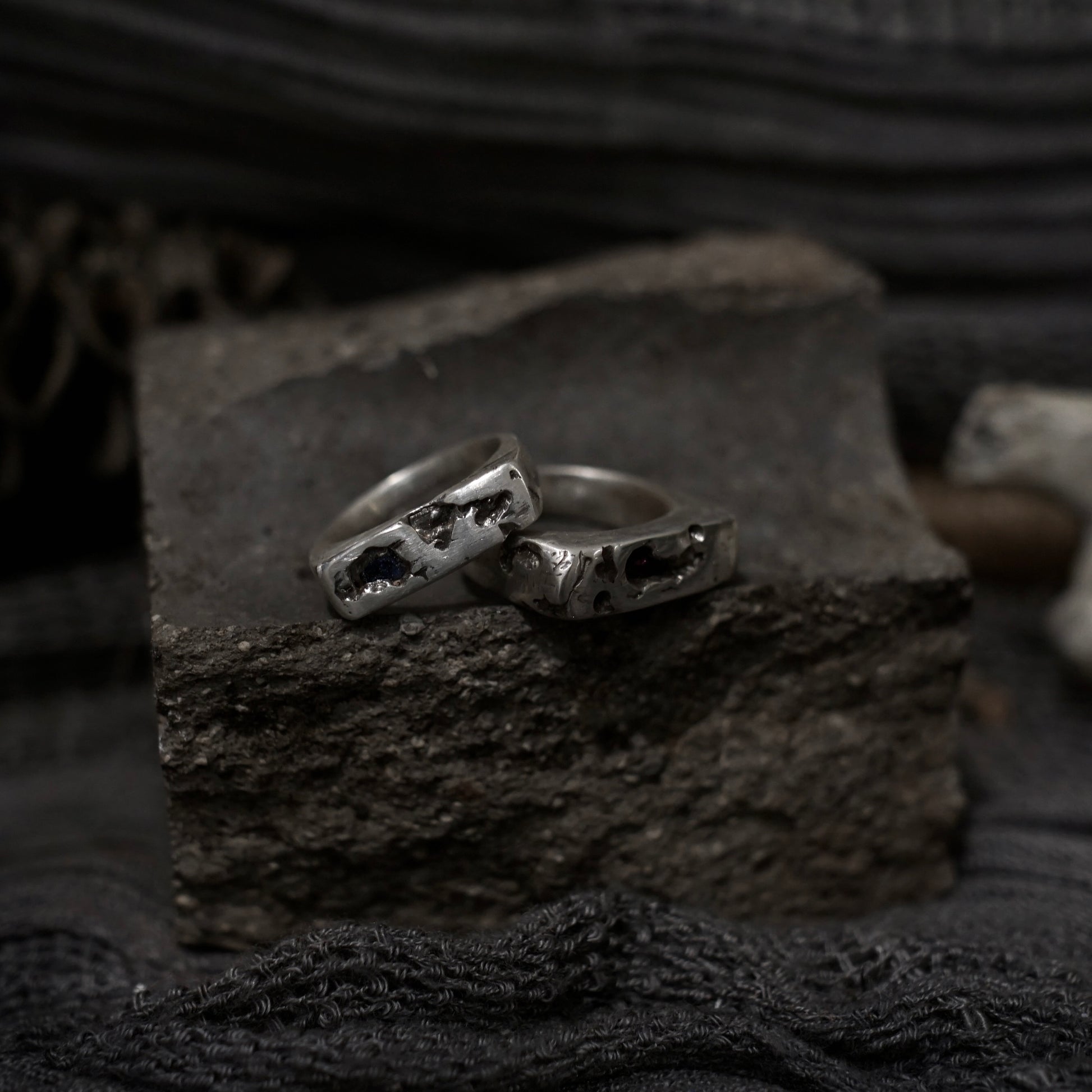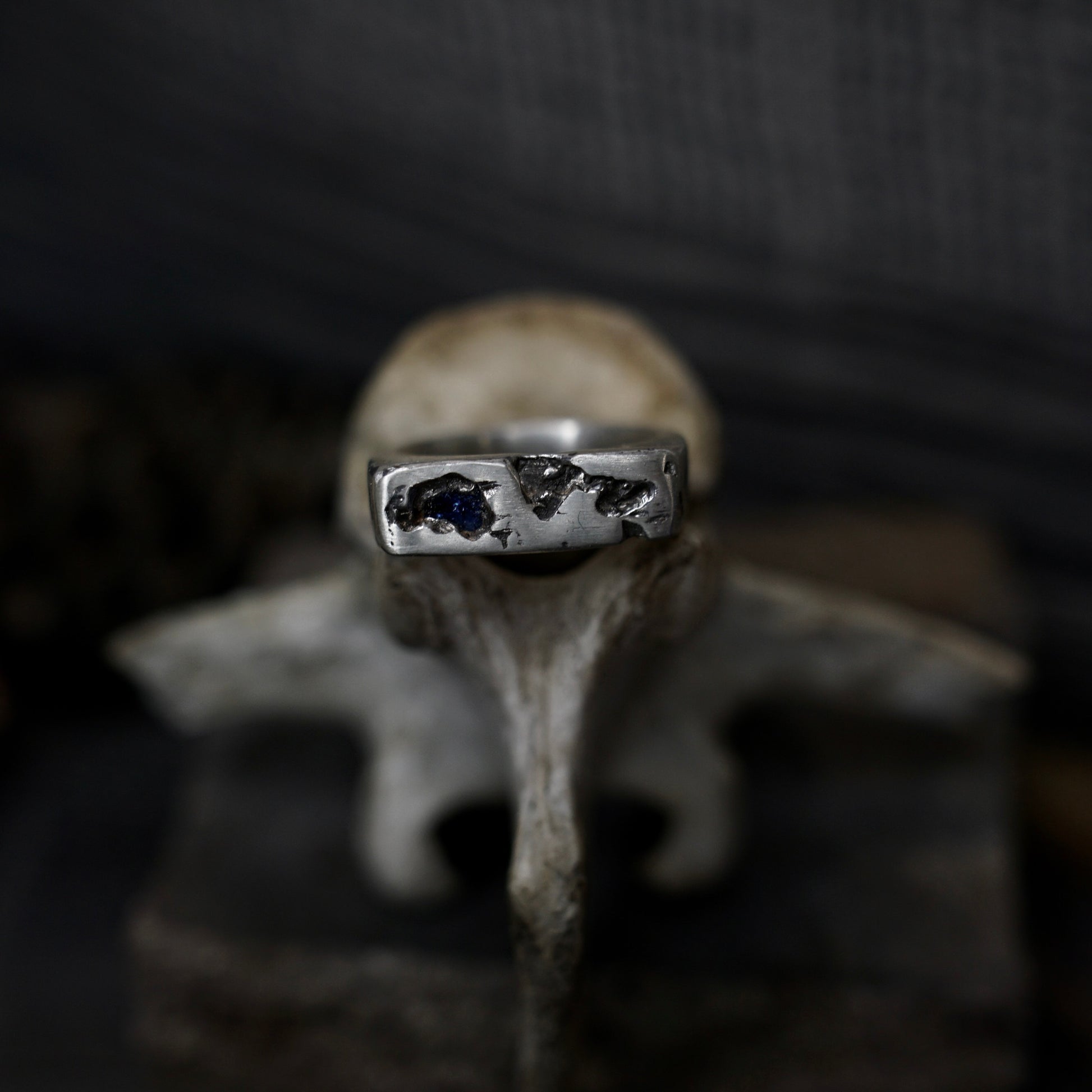 925 sterling silver rectangle signet ring set with cz blue sapphire